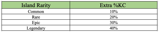 4️⃣. ADDITIONAL %KC RECEIVED ACCORDING TO ISLAND’S RARITY