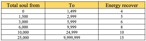 Every player will get their energy recovered every 3 hours with the amount of energy depending on the TOTAL SOUL of all birds synced in PVE mode.