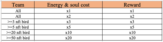 Note: Depending on the number of nft birds synced, player can unlock the number of times betting their birds’ soul & energy.